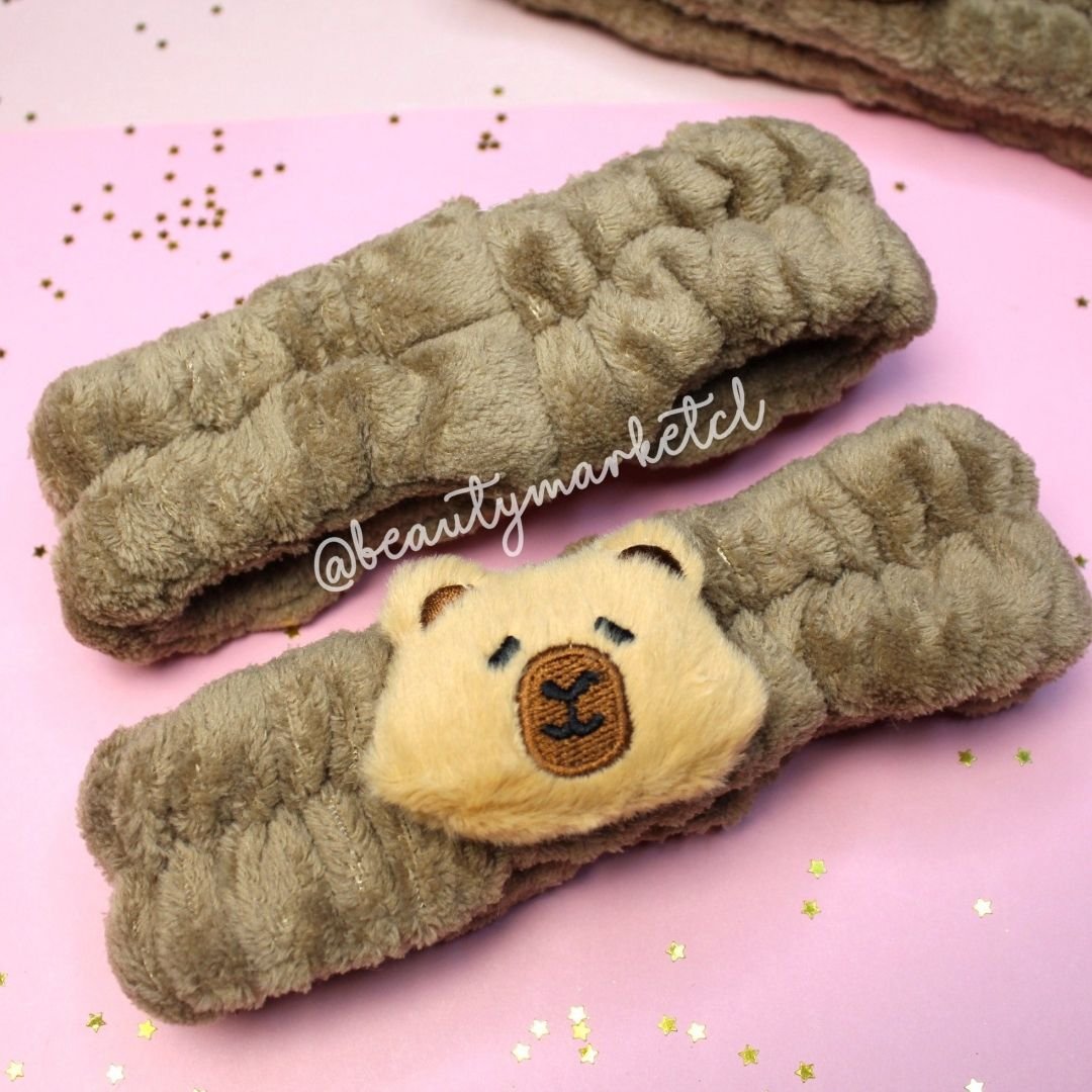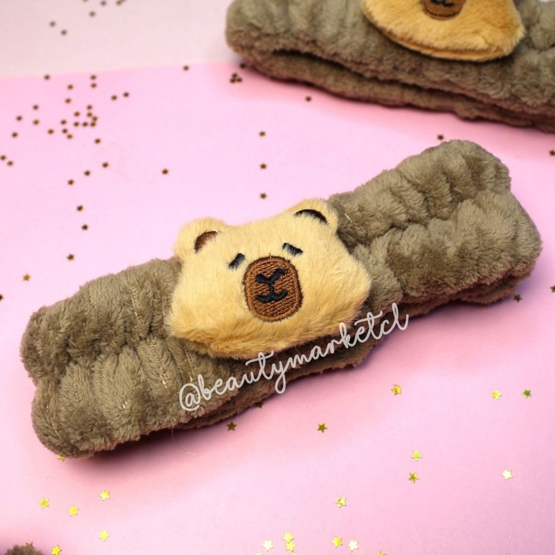 Cintillo Spa Capibara, ideal para complementar tu Rutina de Skincare o para Maquillarte.