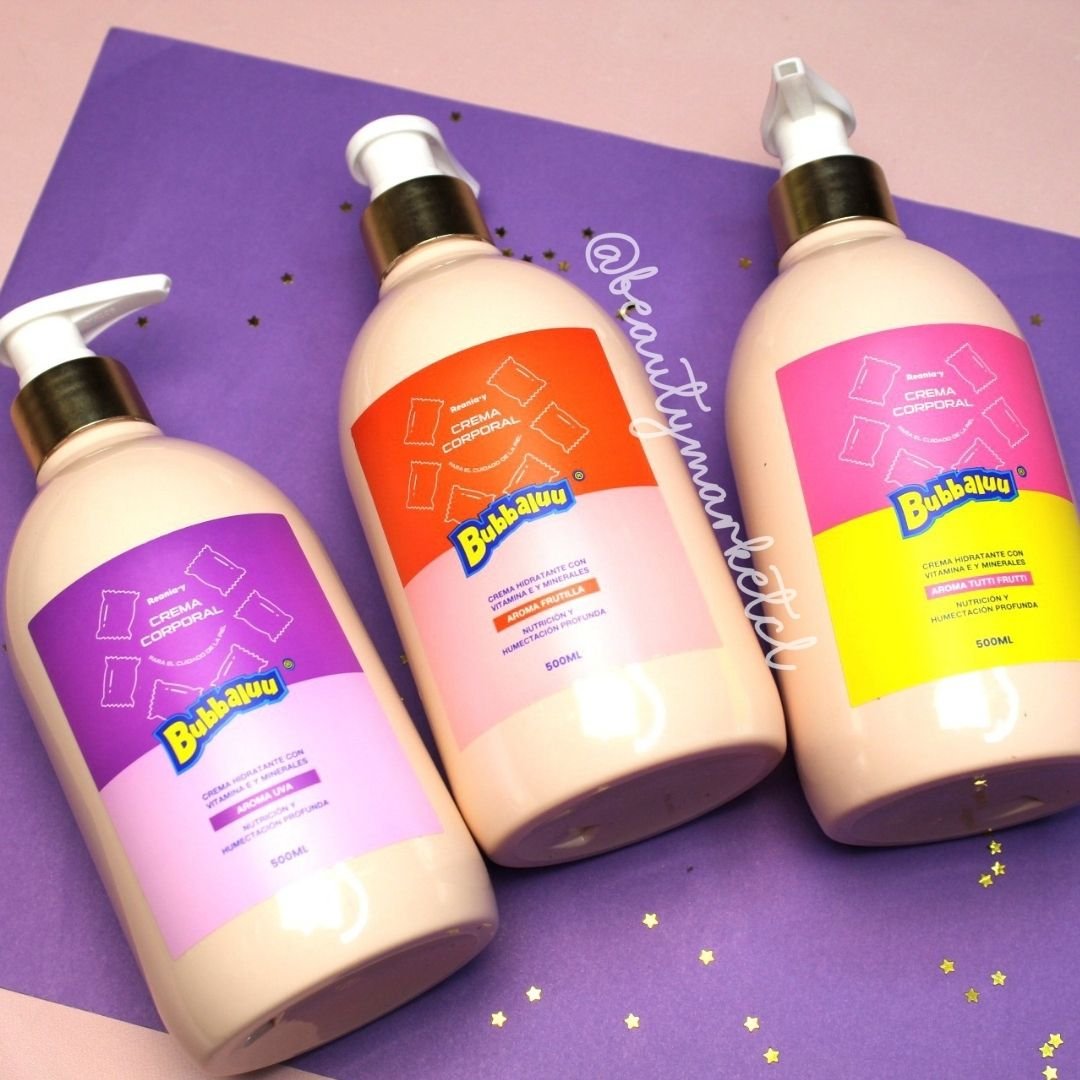 Crema Corporal Bubbaluu, hidratante con Vitamina E y Minerales con deliciosos aromas.