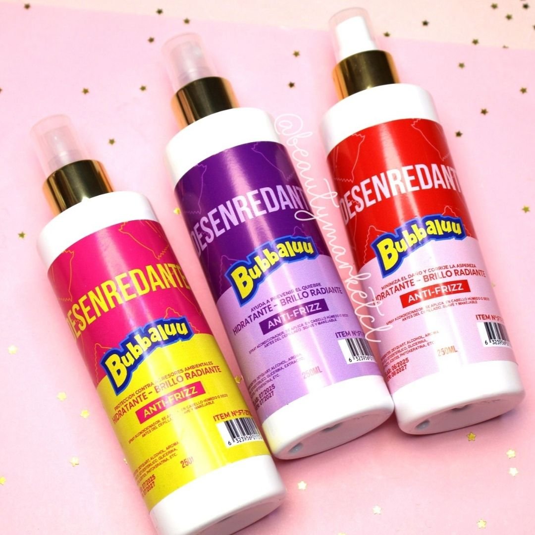 Desenredante Bubbaluu, hidrata, aporta brillo, minimiza el daño y suaviza el cabello para facilitar el peinado con efecto anti frizz y deliciosos aromas: Frutilla, Tutti Frutti y Uva. 🍓🍒🍇🍉