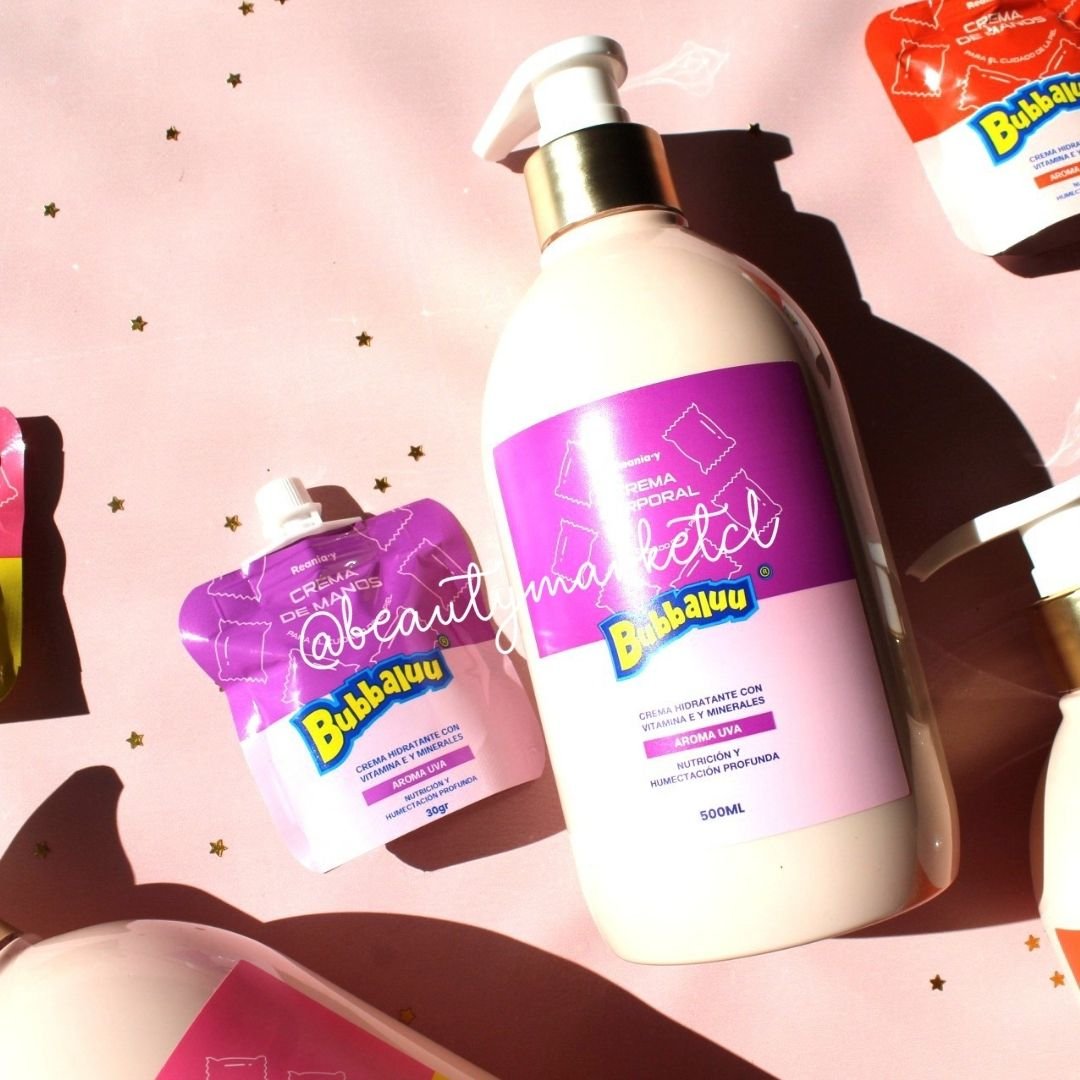 - Crema Corporal Bubbaluu, hidratante con Vitamina E y Minerales con deliciosos aromas. 500 ml.