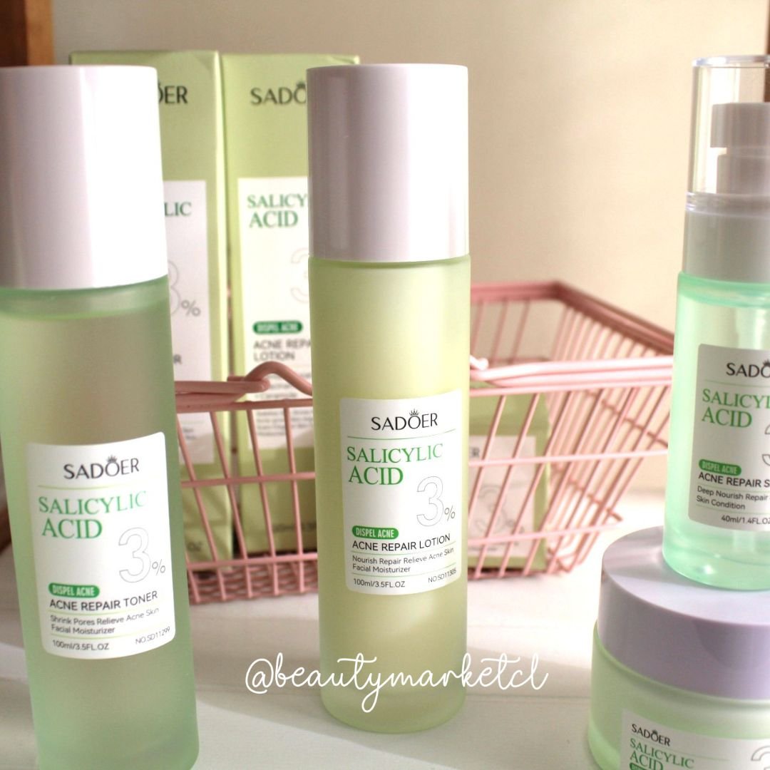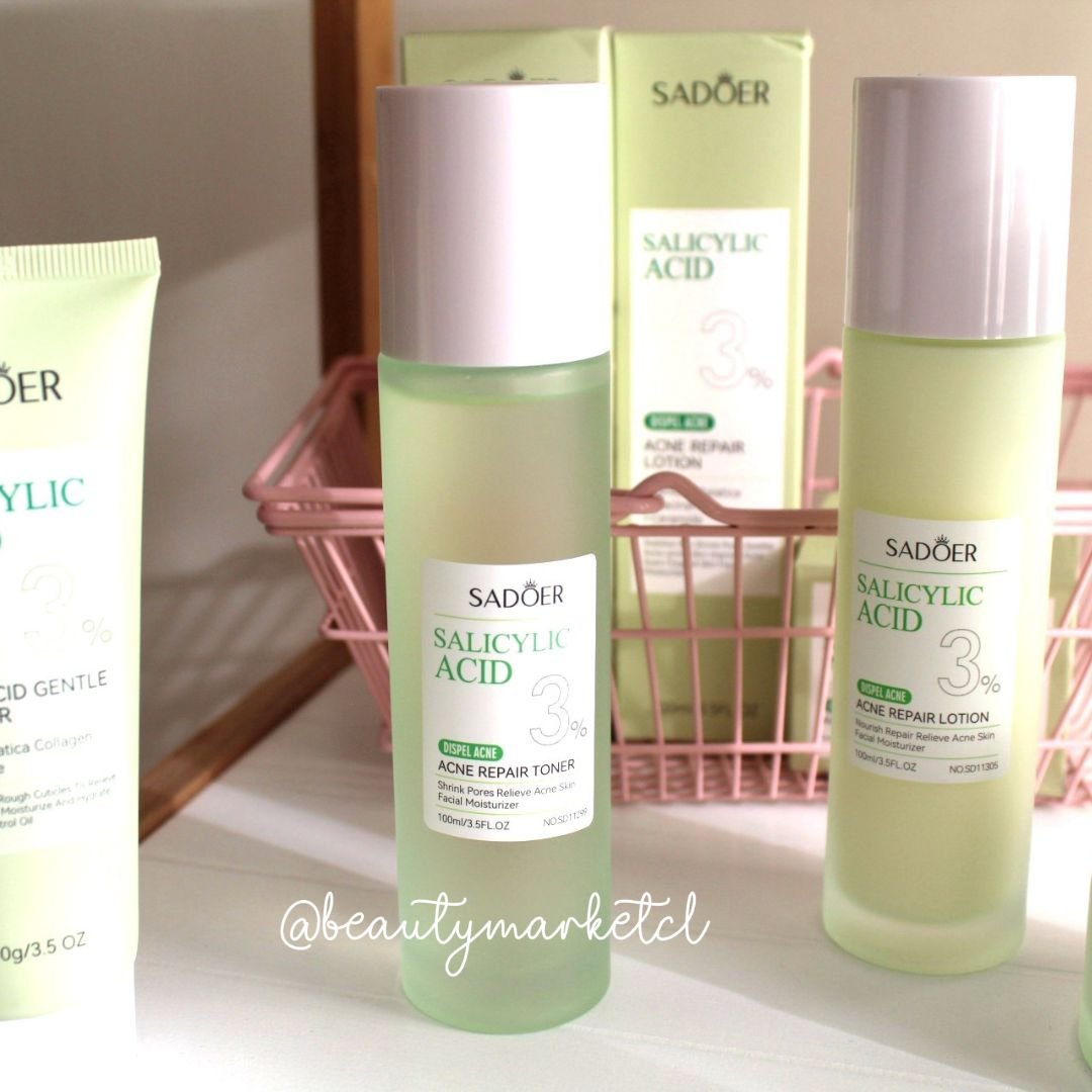 - Loción Facial Ácido Salicílico con Centella Asiática, Niacinamida y Ceramidas. Hidrata, calma y mejora la cicatrización de la piel propensa al acné, su textura ligera es ideal para pieles grasas o mixtas ya que se absorbe rápidamente, dejando la piel suave y radiante.