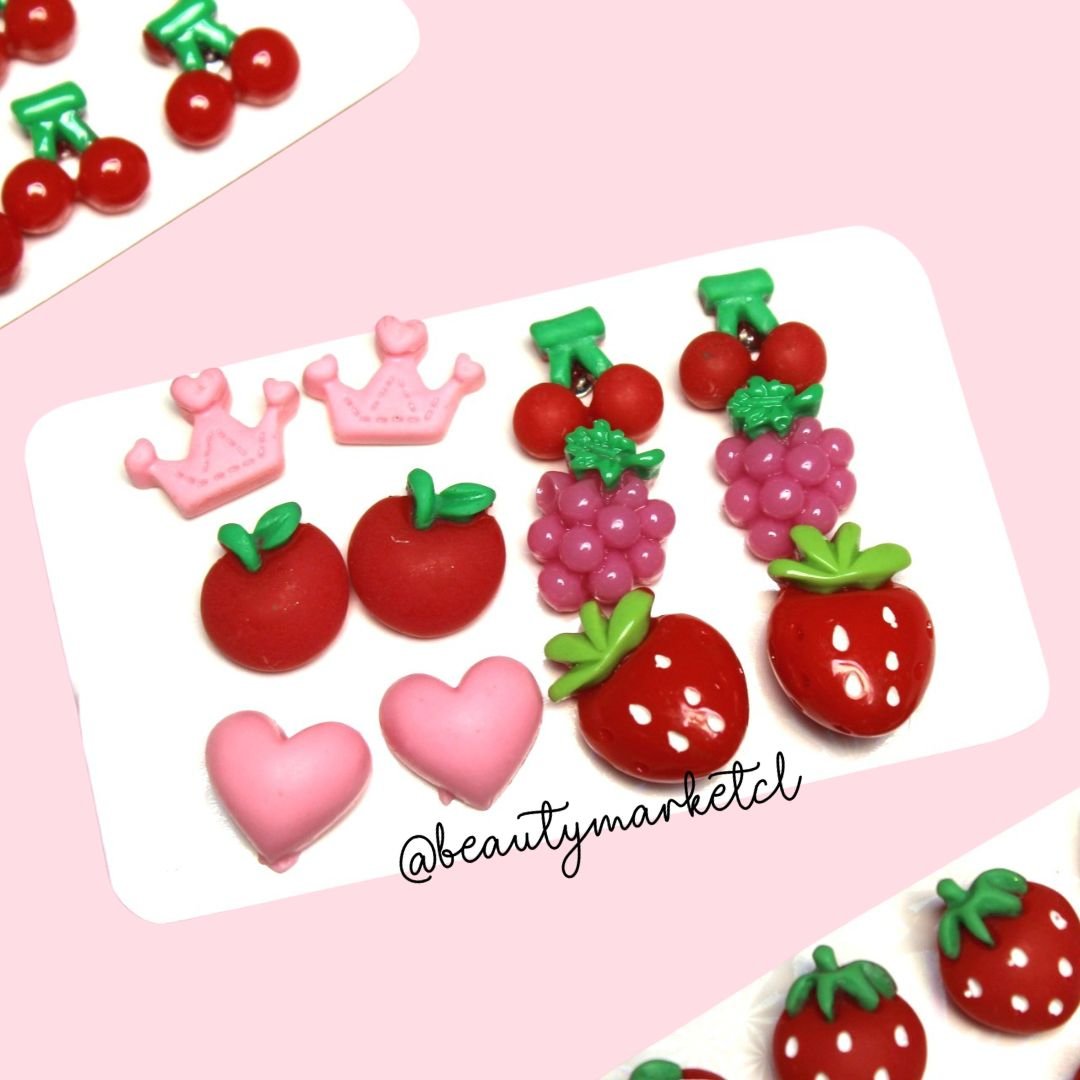 Set de Aros para Niñas Frutas, lindos diseños surtidos. 🍒🍓🩷